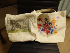 これまでは左のSAOPのトートを使っていたのだが、やや小さいのが悩みだった。今回ゾンビランドサガ ゆめぎんがパラダイスのグッズにあったトートバッグが丁度大きかったので最近はこちらを重宝している。