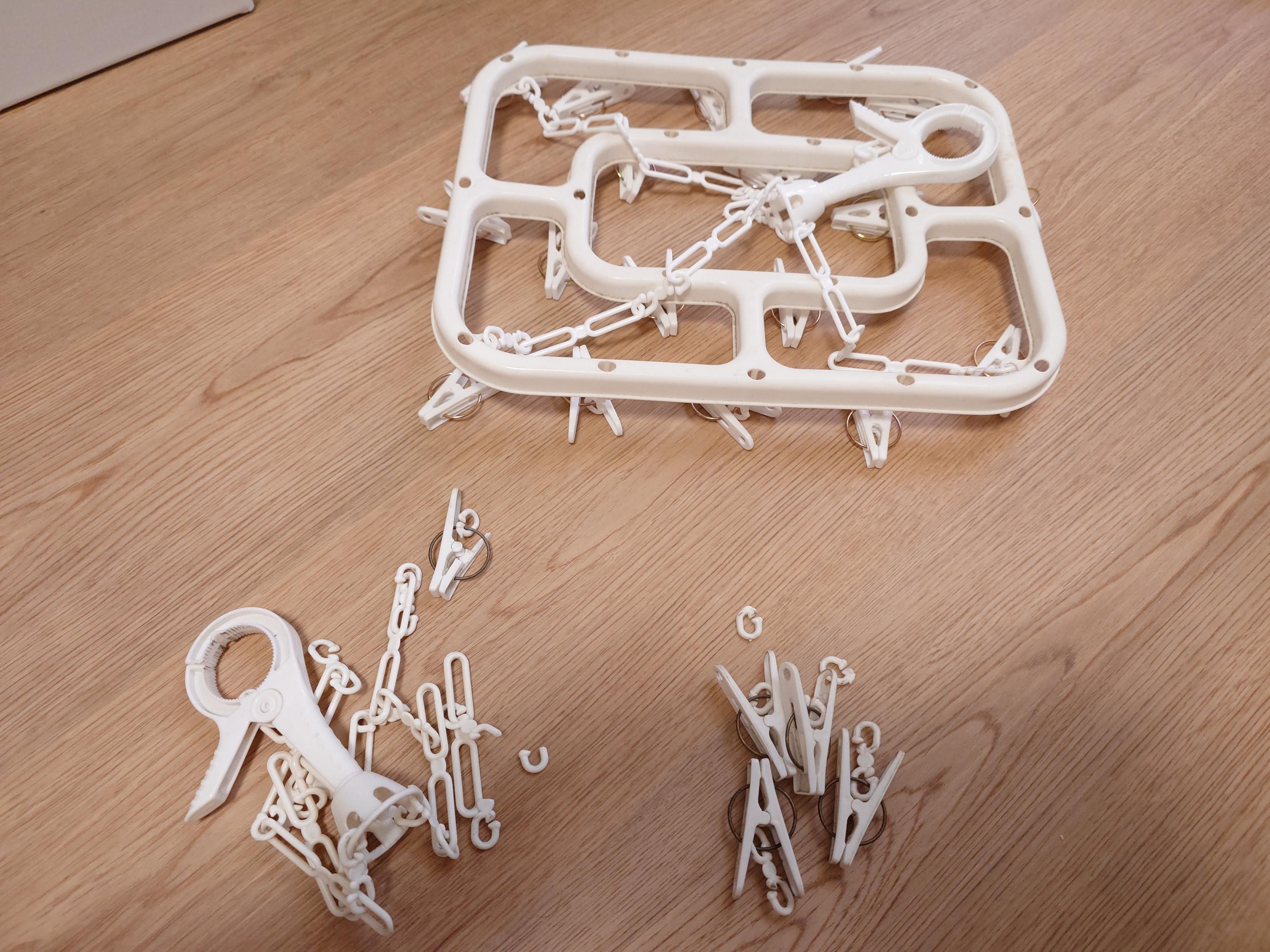 このピンチハンガーは5年以上使っていて、今使っているものは購入から3年ほど経ち、プラスチック製なので、経年劣化でピンチやチェーンが砕けてしまった。本来なら買い替えたかったが、もう同じものは売っていなかった。