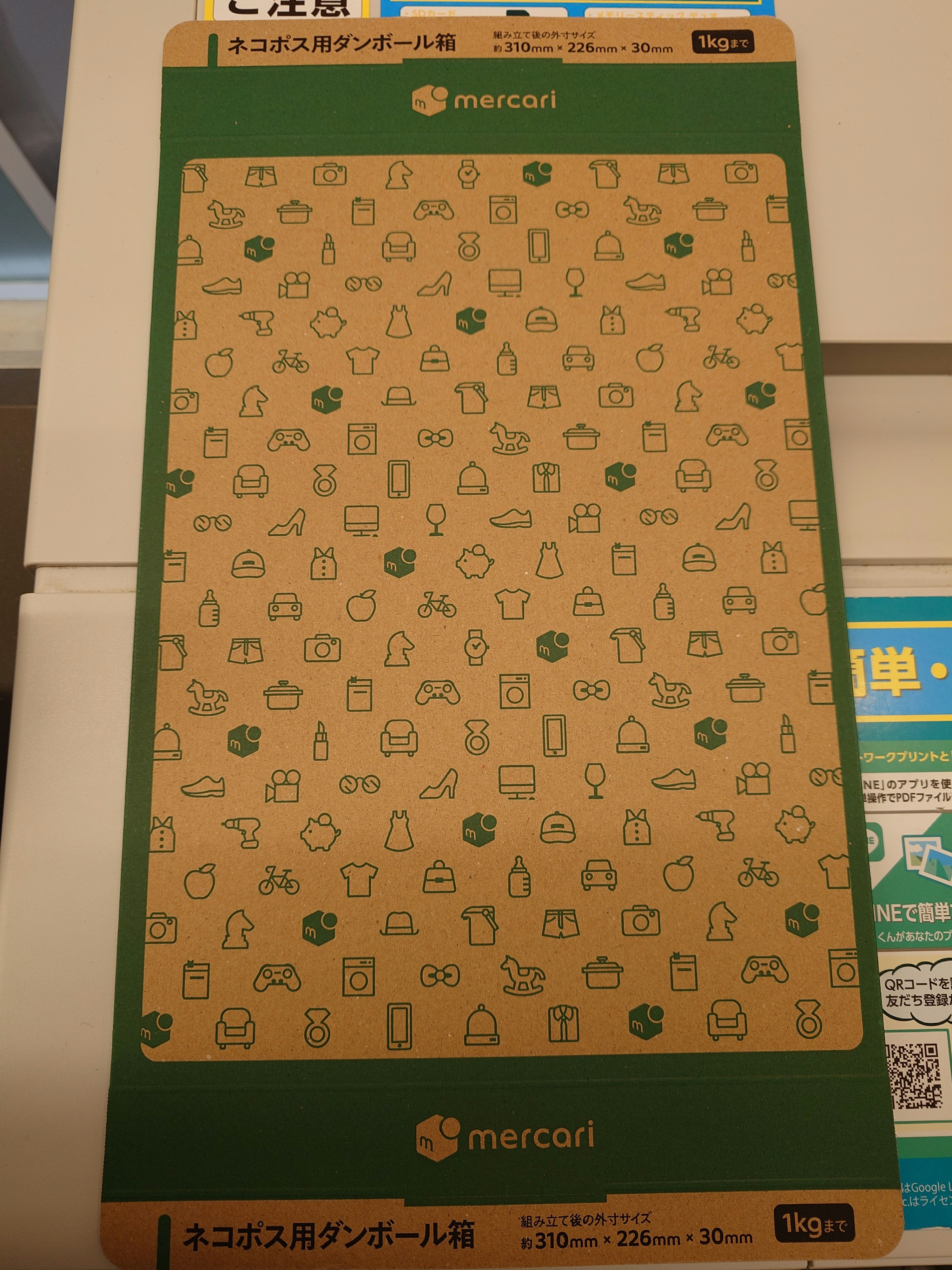 概要としては自炊代行業者に申請を出し、コンビニにあるメルカリ用の箱に同人誌を詰めてクリックポストをネットで注文してポストに投函するだけだ。