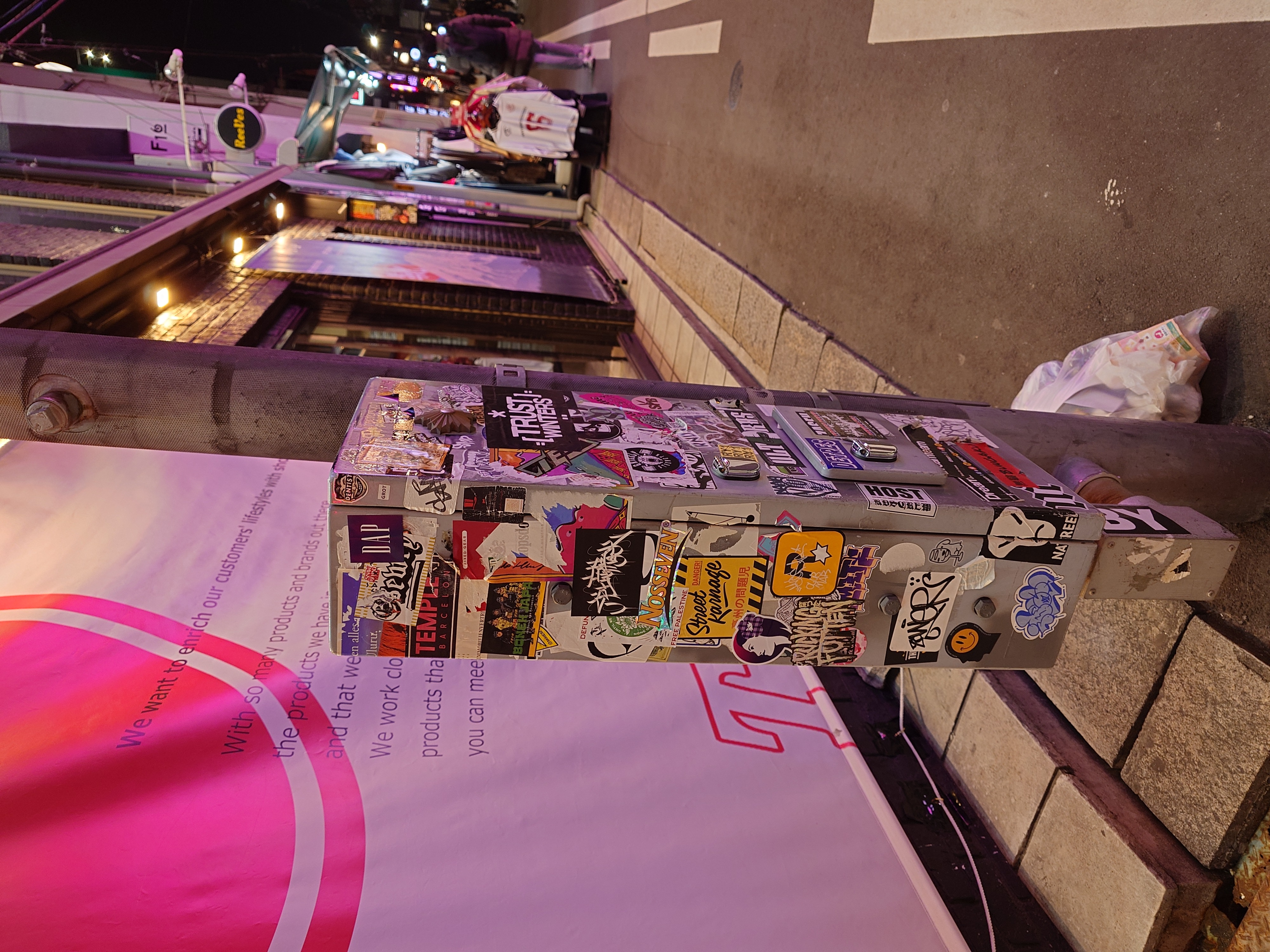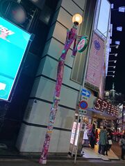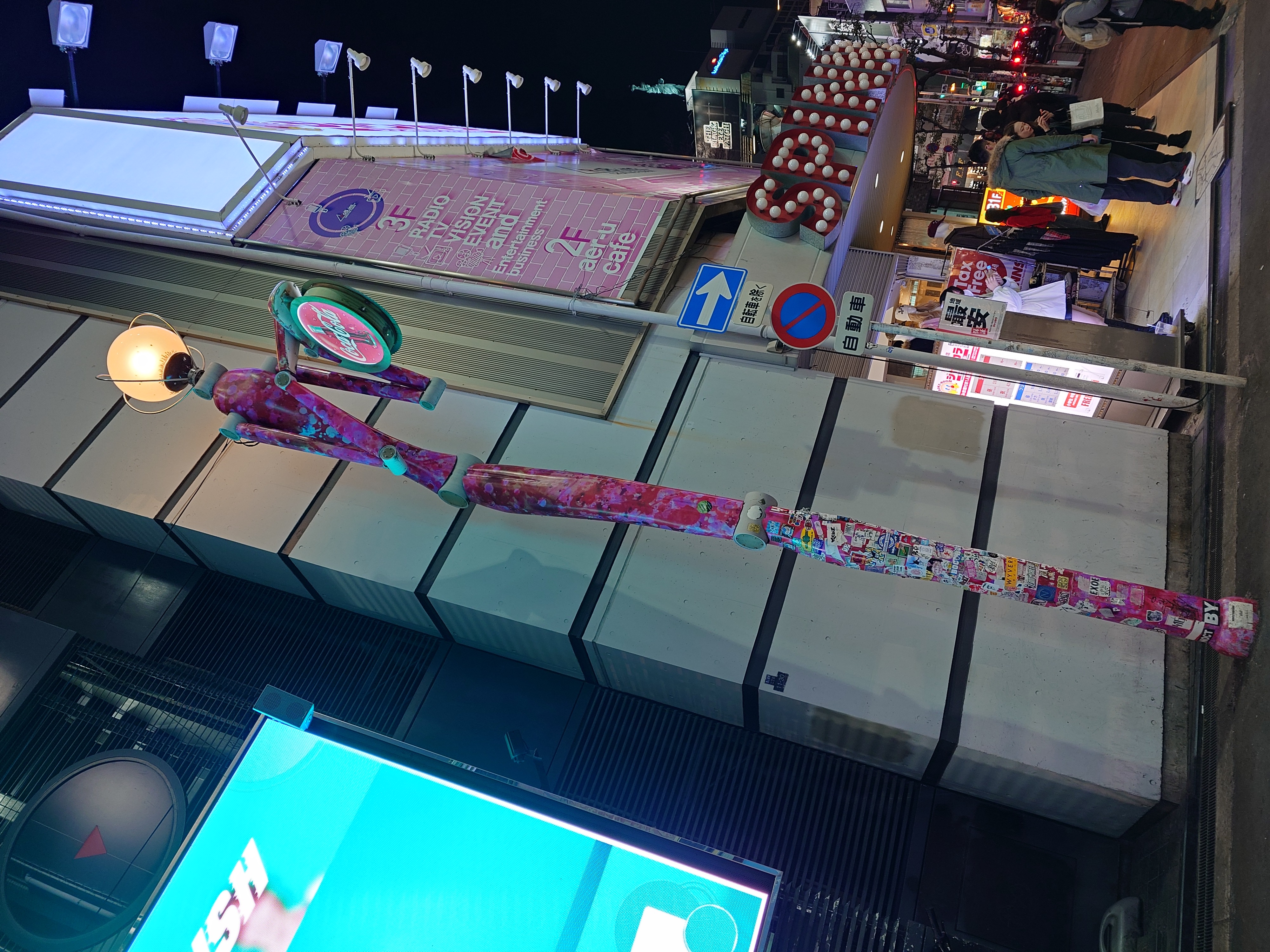 まず目に入ったのが、このストリート的にステッカーがベタベタ貼られた電柱類である。しかも単なる電柱かと思ったらマーブル模様のロボットの姿をしていて無駄にアート。関節まで丁寧に作られているほどだ。
