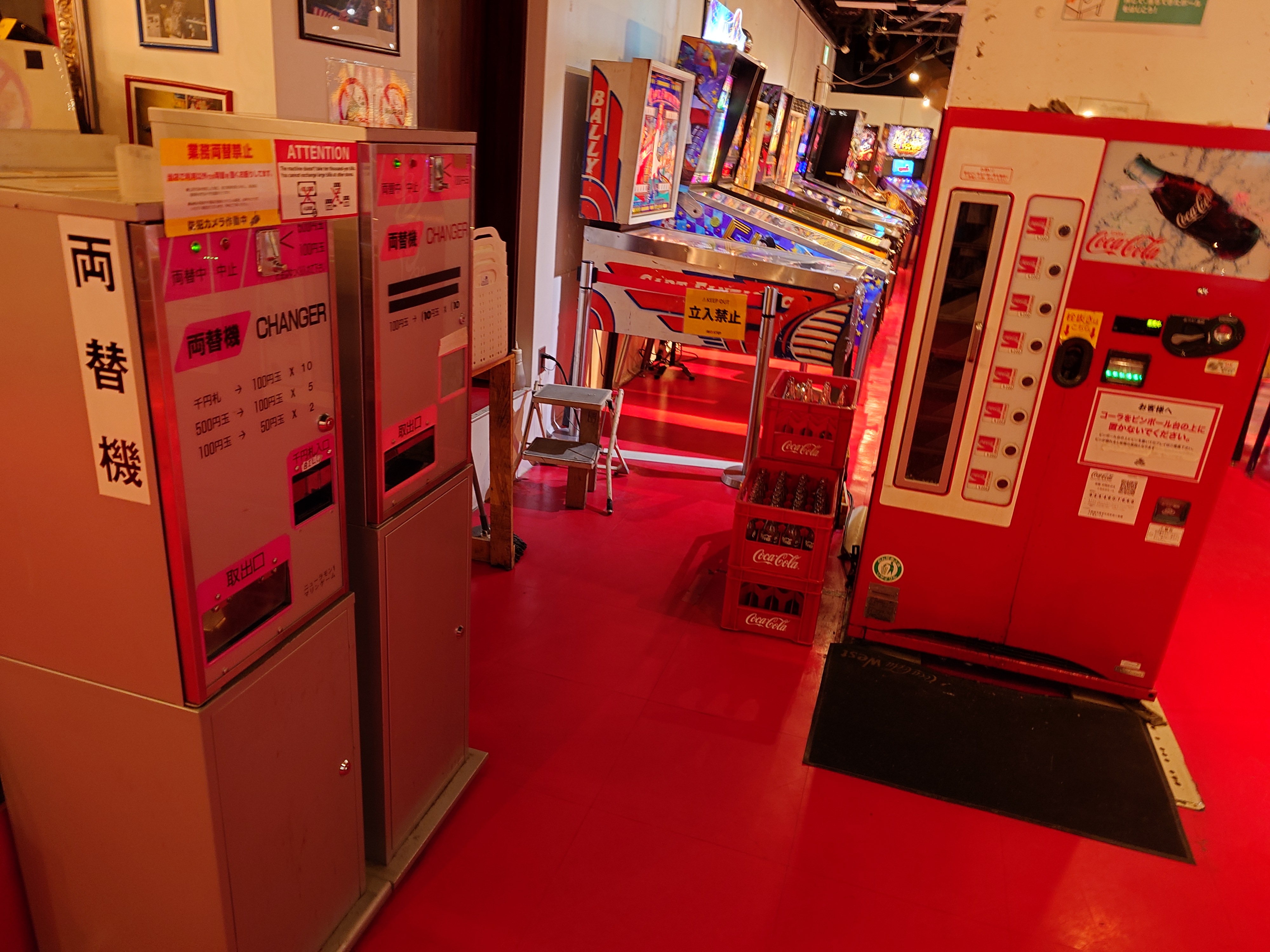 店内には千円札の両替機もあり、千円札があれば両替して遊べるようになっている。また懐かしい感じのコーラ瓶の自販機もあり、雰囲気が良かった。