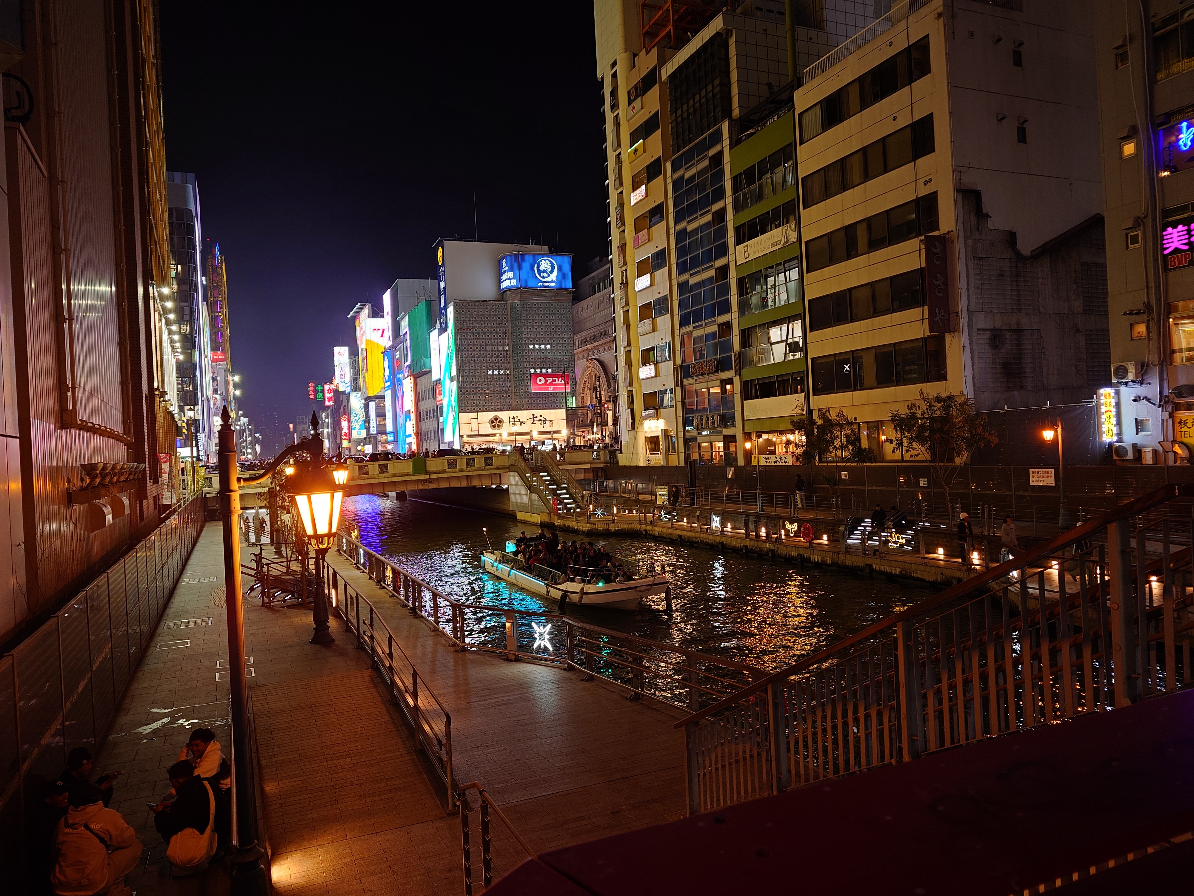 ゆったり漂う水上バスや周りの明かり、道頓堀と書かれた壁など、全体的に雰囲気がとても良かった。