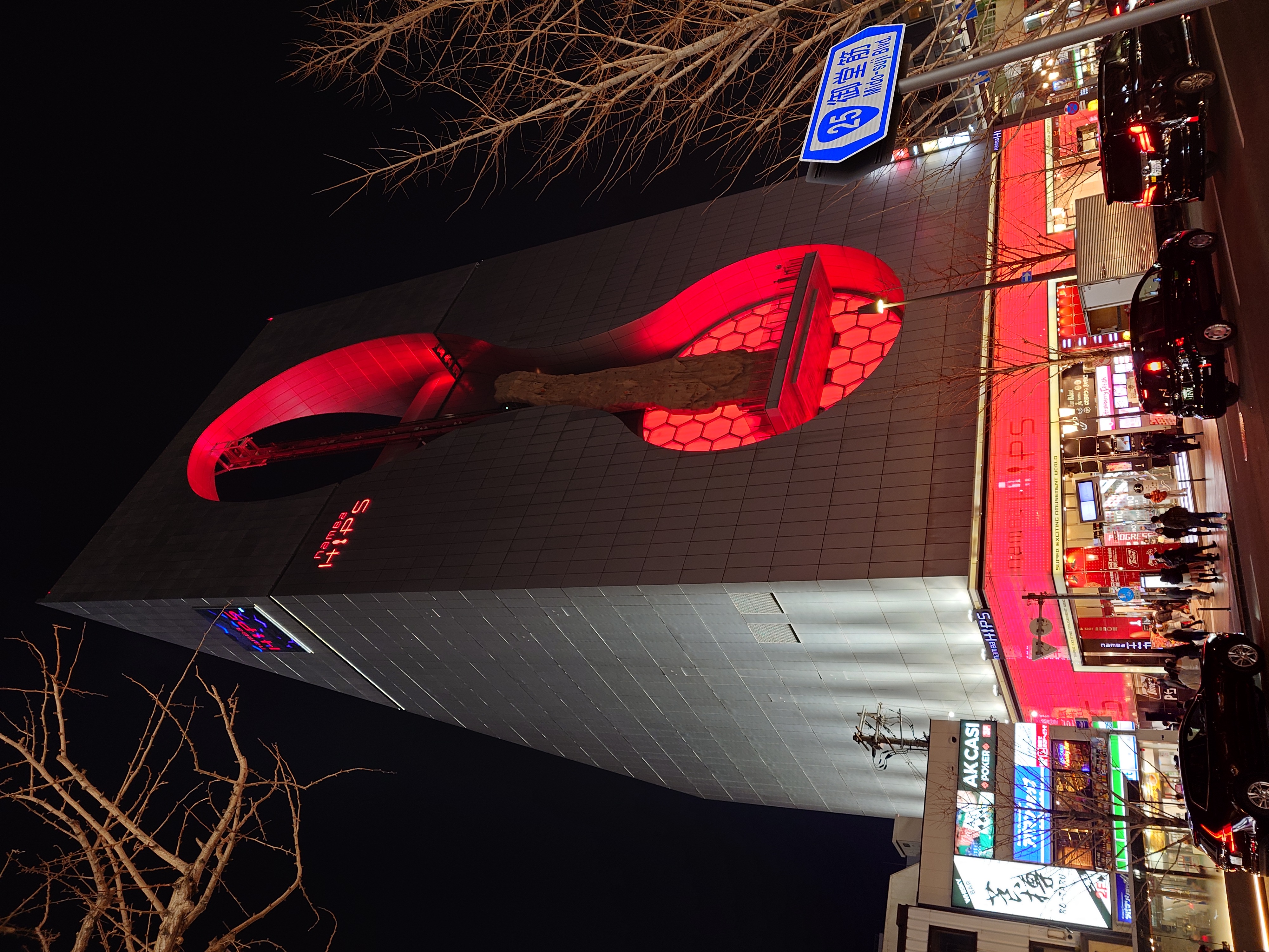 そして日本橋のほうに目をやるとnamba HIPSというHEP FIVEの親戚みたいな名前のビルがあり、何やら禍々しい感じの見た目のところに、ご神体の様なものを抱えていてなんかすごかった。シャングリ・ラのアニメに出てきそうな見た目だ。