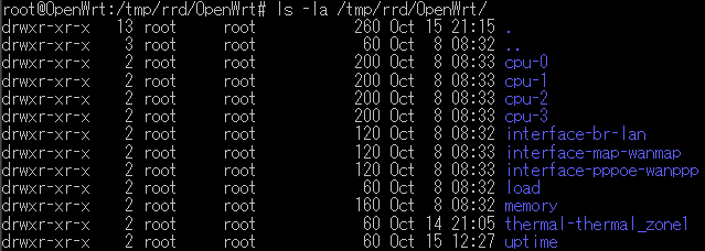上図の青枠のように壊れて表示されていない画像や、集計対象外のものが表示されている場合、/tmp/rrd/OpenWrt/
