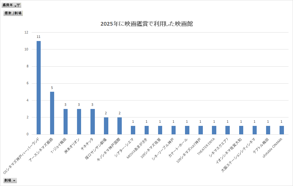 映画館ごとの鑑賞回数