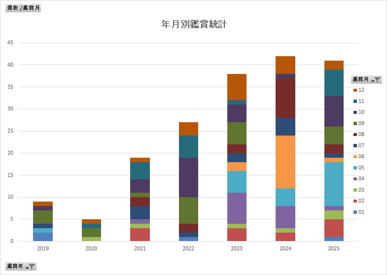 今年も2024年と並ぶほど多く鑑賞した。参考までに2024年が42回、今年が41回だ。