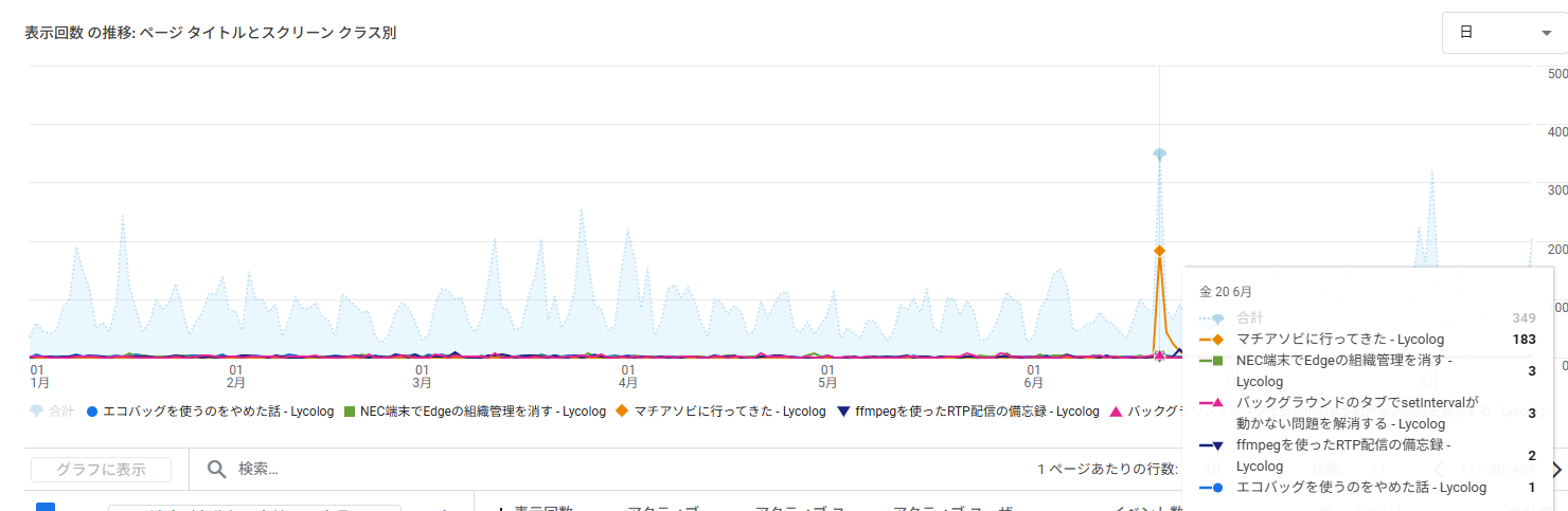 6月20日でマチアソビに行ってきたの記事への来訪が多く跳ねたようだ。恐らくXに投稿した影響だと思う。