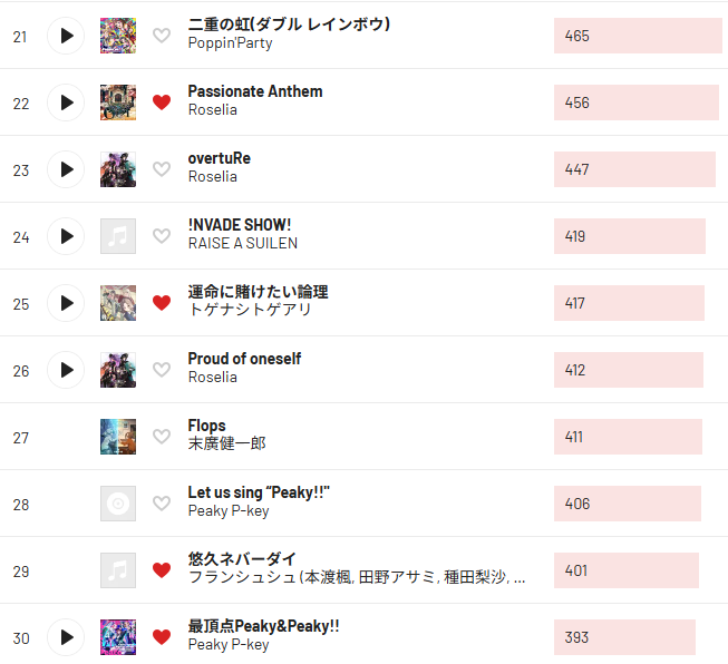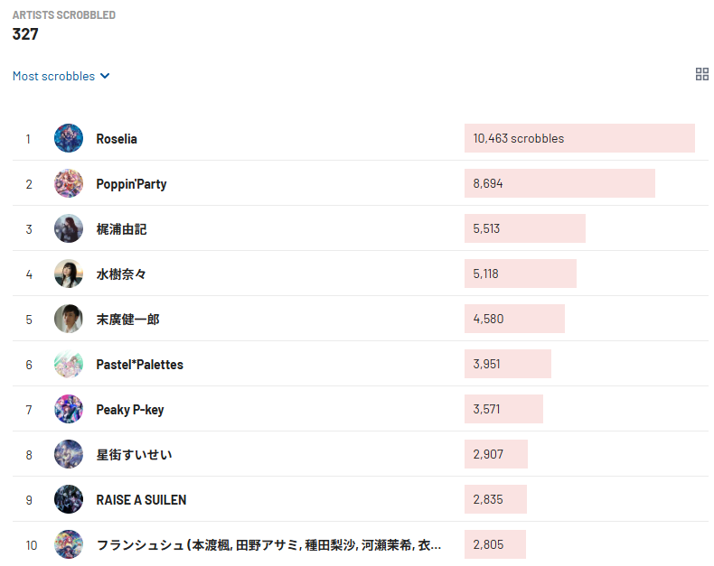 二位はなんとフランシュシュ。フランシュシュの曲を聞き始めたのはゾンビランドサガ ゆめぎんがパラダイスの鑑賞後、それも10/29が恐らく最初の聴取だったと思われるため、僅か二ヵ月で2025年で最も聴いたボーカルアーティストとなった。驚きである。