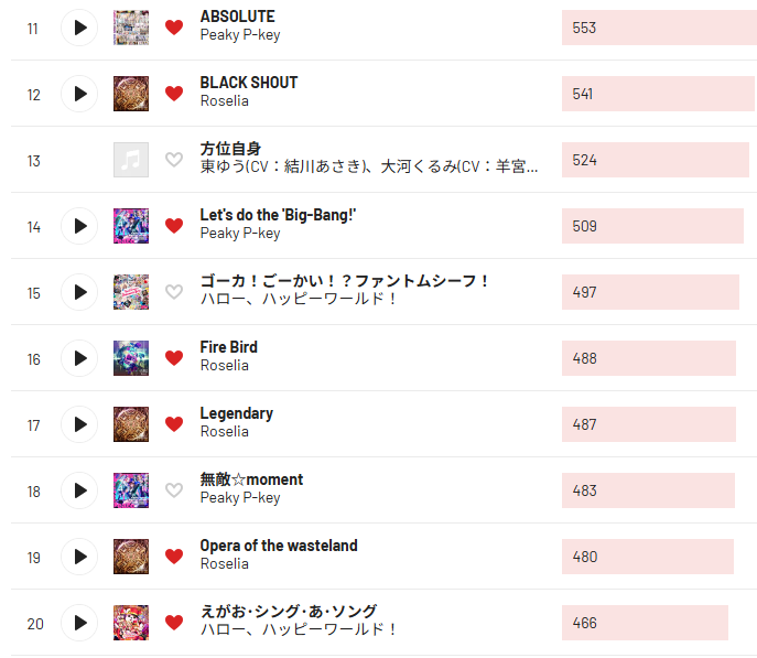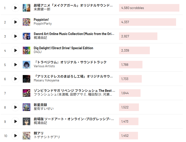 再生回数でトップになったのはメイクアガールのOSTの作曲家であられる末廣健一郎だった。OSTなので尺の関係で再生回数が増えたと思われる。