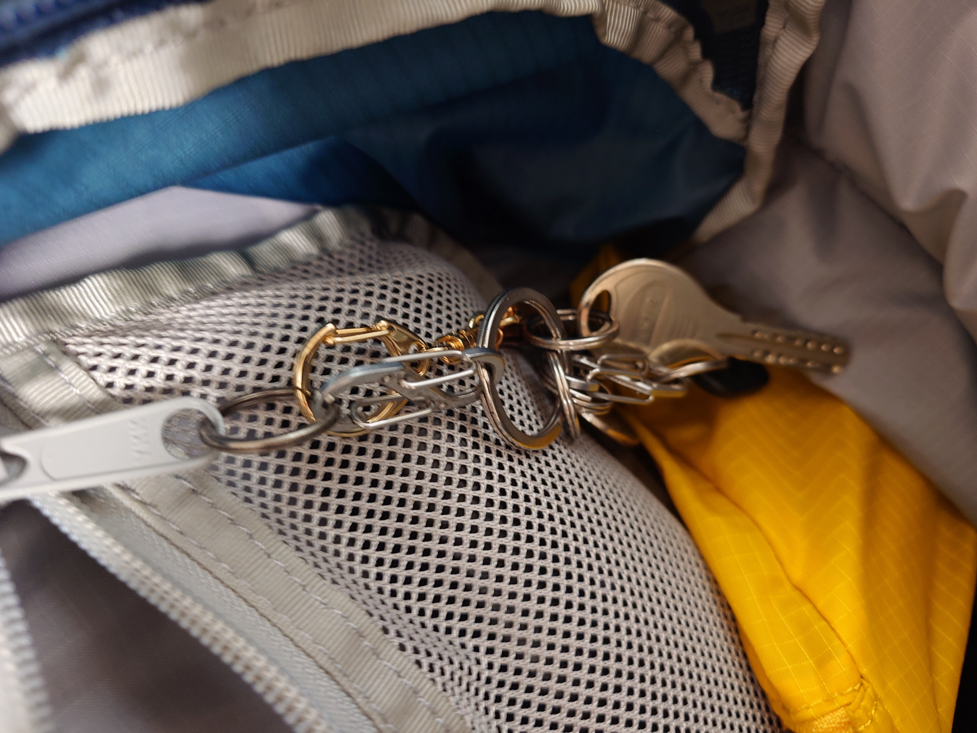 普段のバッグ、PCバッグ、登山ザック、トートバッグに至るまで全てのカバンに例の鍵束システムを実装した。