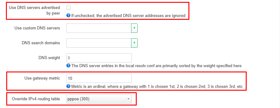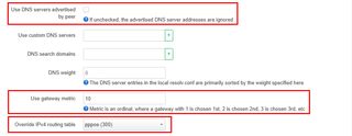 、Override IPv4 routing tableをpppoe (300)